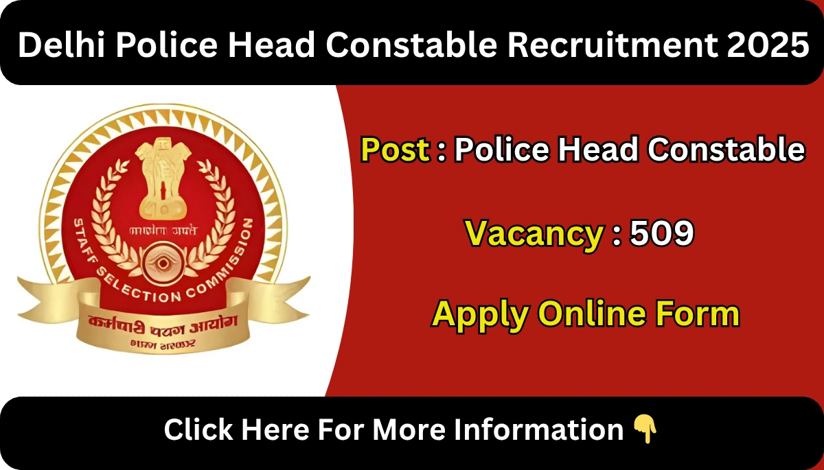 Delhi Police Head Constable Recruitment 2025 | Staff Selection Commission (SSC) Delhi Police Head Constable Recruitment Online Application form 2025 3 October 20251 October 2025 by AAPNI SARKARI JOB
