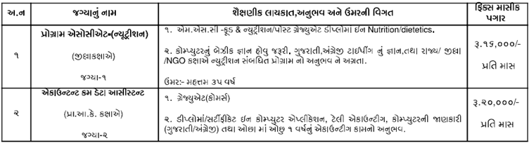 Programme Associate (Nutrition) | 01 | Rs. 16,000/- | District Level |